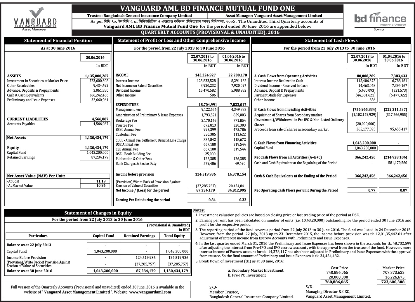 Q1 Financial Statements (Provisional & Unaudited) of Vanguard AML BD Finance Mutual Fund One