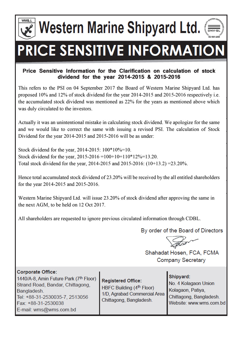 Western Marine Shipyard Limited Price Sensitive Information