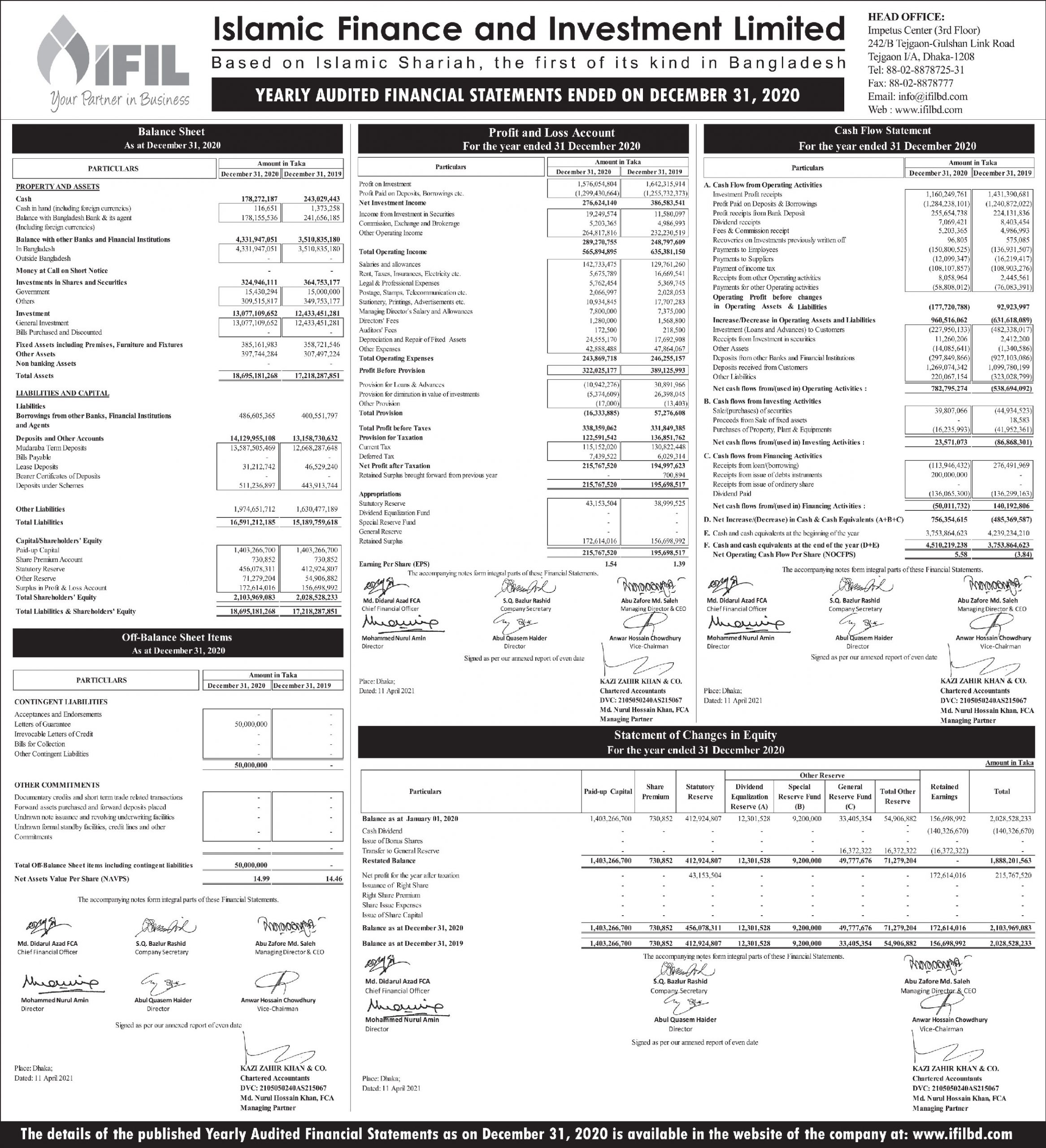 Yearly Audited Financial Statements OF Islamic Finance & Investment Ltd